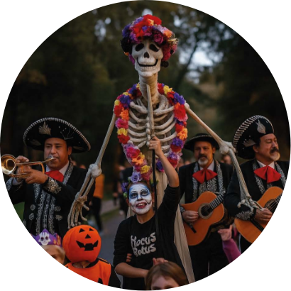 Join the Day of the Dead inspired Skeleton Serenade parade at 5pm – complete with a 9ft dancing skeleton puppet and a magical mariachi band.
